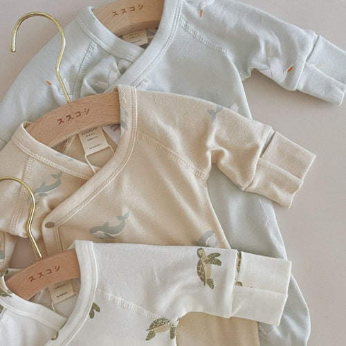 Cotton Knit Baby Kimono Overall Suit. Cotton
